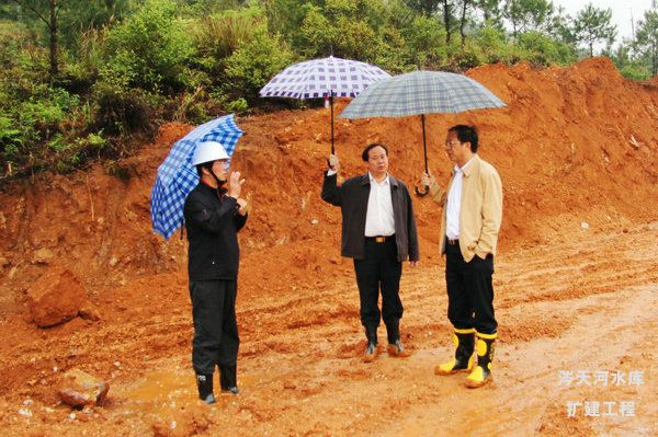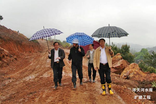 4月7日下午,副市长舒平在涔天河扩建工程指挥部负责人以及江华县有关领导的陪同下,冒雨深入江华瑶族自治县东田镇现场督查涔天河水库扩建工程前期工作进展情况。
