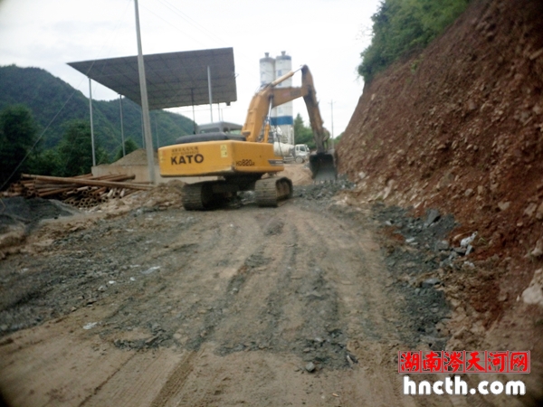 7月1日,雾江滑坡体排水交通洞附近,使用挖机整修施工道路,铺设石渣