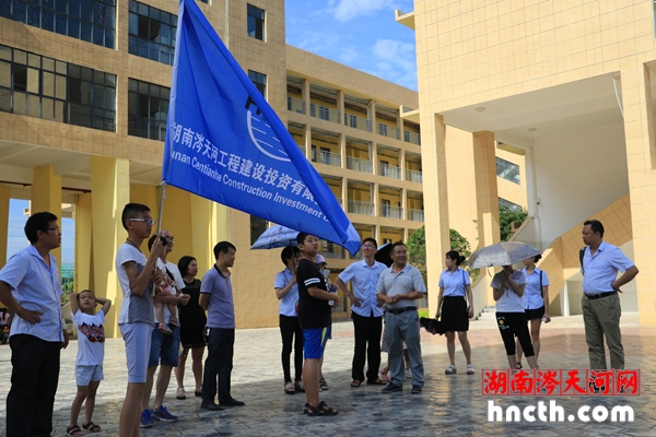 在涔天河水库扩建工程施工现场,公司工程技术人员为孩子们讲述了愚公移山的故事和涔天河人移山筑坝精神,介绍了老涔天河水库的历史、新水库枢纽的综合效益。图为:小朋友们合影。